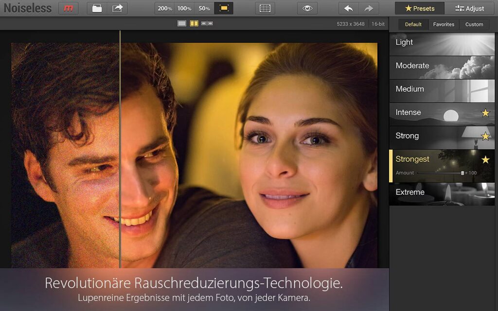 8. Nach der automatischen Anwendung können Sie die Stärke des Rauschunterdrückungs-Effekts manuell anpassen. Ein Schieberegler wird angezeigt, mit dem Sie die Intensität des Effekts erhöhen oder verringern können. Das Anpassen des Schiebereglers ermöglicht es Ihnen, das optimale Gleichgewicht zwischen Rauschreduzierung und Erhaltung von Bilddetails zu finden. Eine höhere Einstellung des Schiebereglers führt in der Regel zu einer stärkeren Rauschreduzierung, kann aber unter Umständen auch feine Details im Bild glätten. Testen Sie verschiedene Einstellungen, um das beste Ergebnis für Ihr spezifisches Foto zu erzielen.