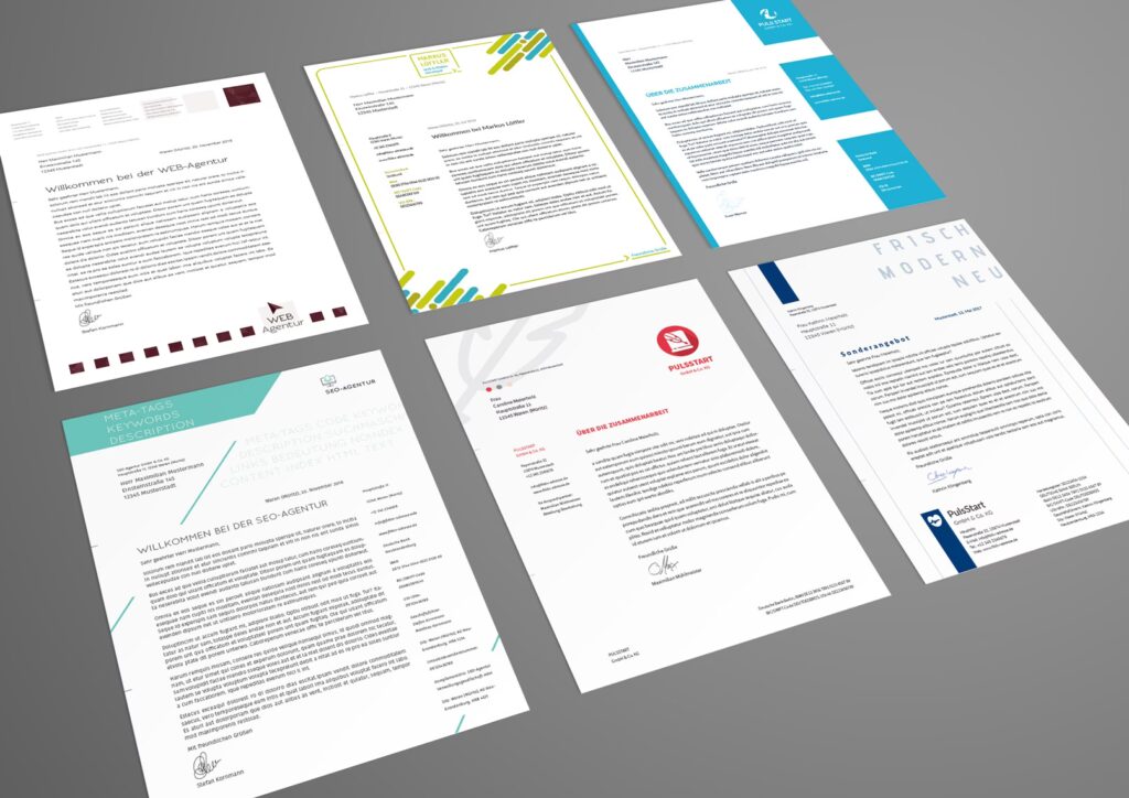 Wenn Ihr Briefpapier auch für die Rechnungsstellung verwendet werden soll, müssen diese zusätzlichen Informationen in der Fußzeile oder einem anderen geeigneten Bereich des Layouts berücksichtigt werden. Ein professionelles Rechnungsdesign, das sich nahtlos in Ihr Corporate Design einfügt und gleichzeitig alle rechtlichen Anforderungen erfüllt, ist für die Glaubwürdigkeit und die reibungslose Abwicklung Ihrer Geschäfte unerlässlich.