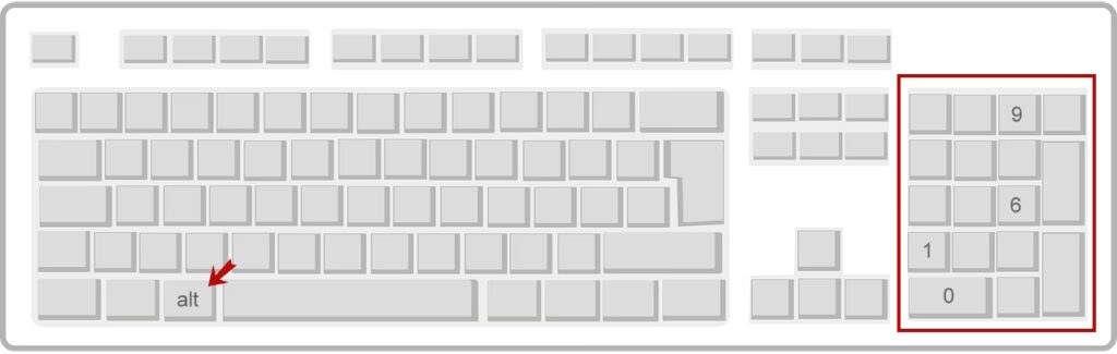 | Windows | Alt + 0169 (auf dem Ziffernblock) | U + 00A9 |