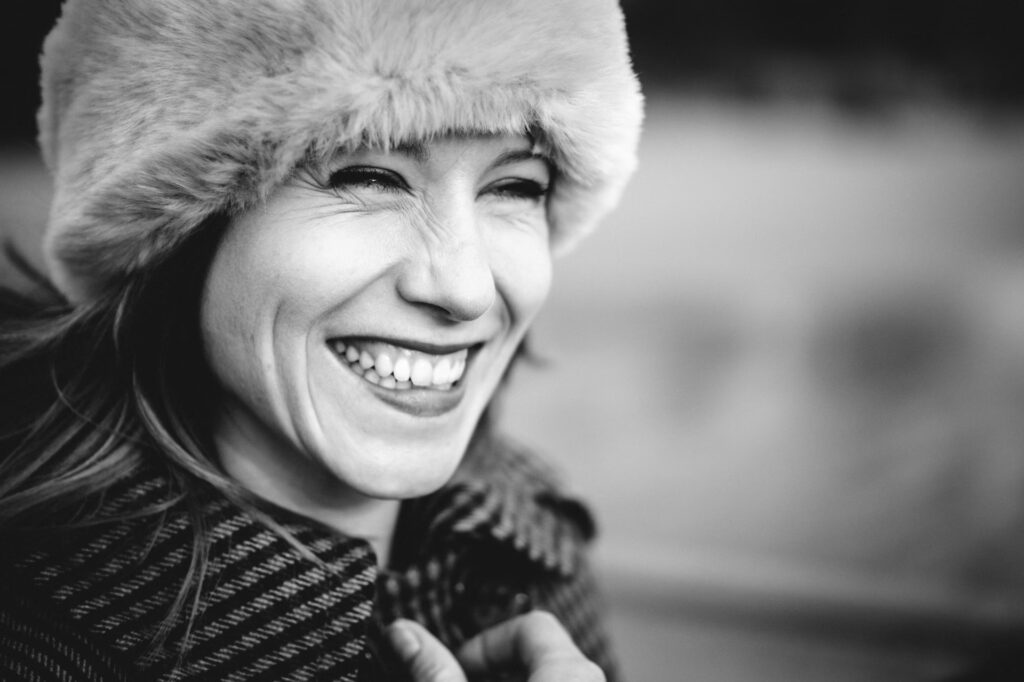 Mit modernen spiegellosen Kameras und ihrem Augen-Autofokus ist das Scharfstellen auf das Auge sehr einfach geworden. Bei Spiegelreflexkameras musst du den Fokuspunkt manuell auf das Auge legen oder, falls das schwierig ist, auf den Mundwinkel zielen, da dieser auf einer ähnlichen Schärfeebene liegt.
