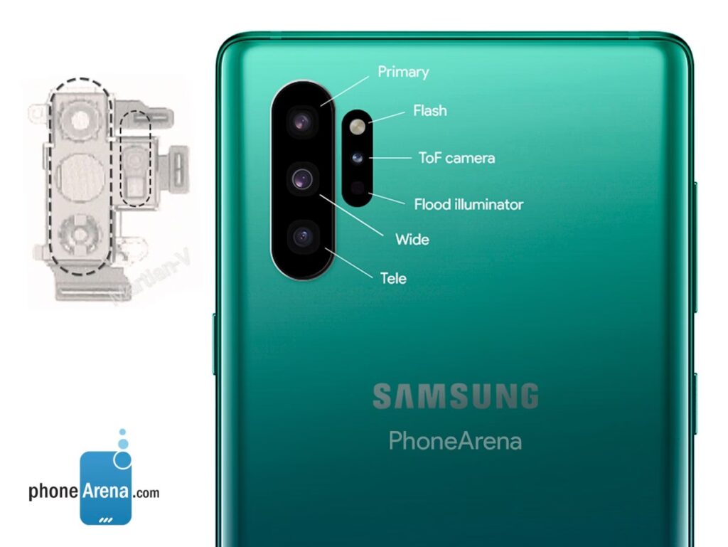- Depth Vision Kamera (ToF-Sensor): Exklusiv beim Galaxy Note 10+ (und Note 10+ 5G) findet sich zusätzlich ein Time-of-Flight (ToF) Sensor. Dieser VGA-Sensor dient der Tiefenschätzung und wird hauptsächlich für Porträtmodi und AR-Anwendungen genutzt.