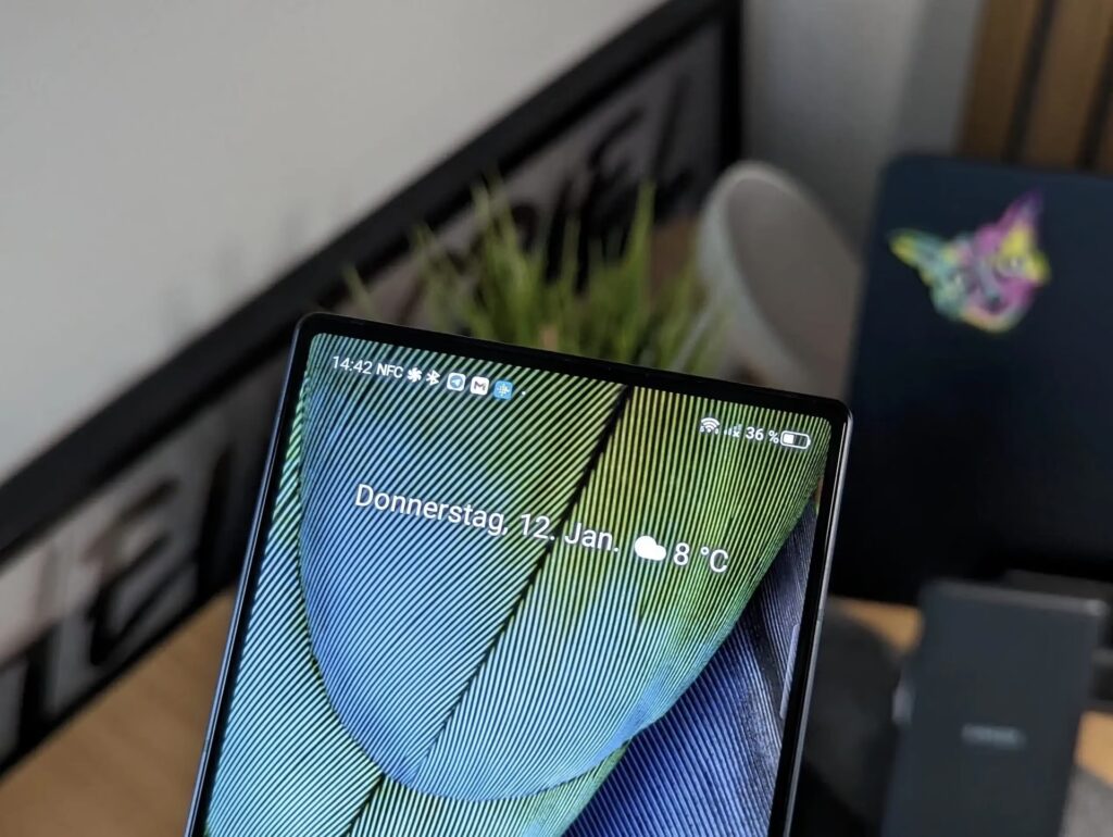 Ein weiteres praktisches Detail ist der seitlich angebrachte Fingerabdrucksensor. Im Gegensatz zu Sensoren auf der Rückseite oder im Display ist ein seitlicher Sensor oft intuitiver zu bedienen. Er befindet sich meist im Rahmen des Telefons, oft integriert in den Ein-/Aus-Schalter, genau dort, wo der Daumen oder ein anderer Finger beim natürlichen Halten des Telefons aufliegt. Ein kurzer Druck genügt in der Regel, um das Gerät schnell und sicher zu entsperren. Diese Positionierung trägt auch zum aufgeräumten Design der Vorder- und Rückseite bei.