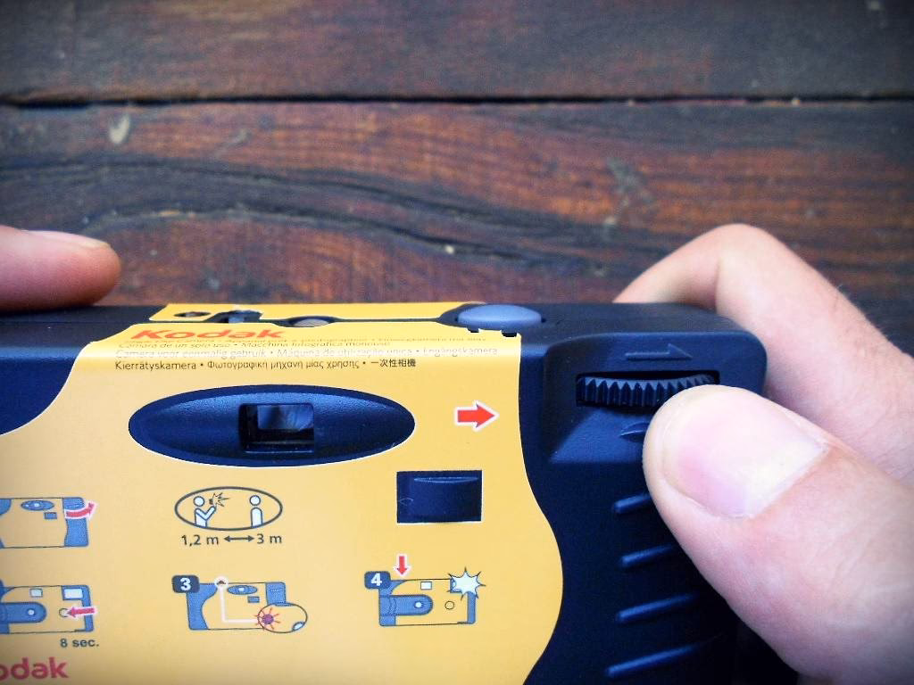 Obwohl die Einwegkamera keine komplexen Einstellungen bietet, erfordern das Beachten des Zählwerks und das manuelle Weiterspulen des Films ein minimales Maß an Interaktion vom Benutzer, das sie von vollautomatischen Digitalkameras unterscheidet.