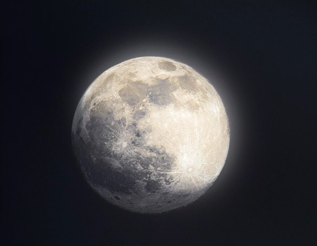 Experimentieren Sie mit dem Weißabgleich, falls Ihr Telefon diese Einstellung zulässt. Ein kühlerer Weißabgleich kann dem Mond eine natürlichere Farbe verleihen, obwohl er oft als weiß oder leicht gelblich erscheint.