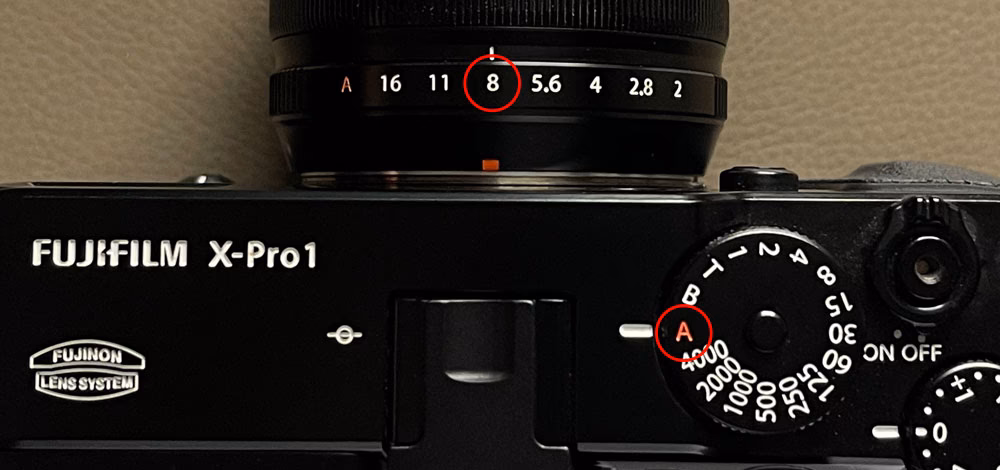Im T-Modus stellen Sie die Belichtungszeit ein. Die Blende wählen Sie separat, abhängig von der gewünschten Schärfentiefe. Eine kleine Blendenöffnung (hohe Blendenzahl wie f/11 oder f/16) vergrößert die Schärfentiefe, erfordert aber eine längere Belichtungszeit. Eine große Blendenöffnung (kleine Blendenzahl wie f/2.8 oder f/4) erzeugt geringere Schärfentiefe und erfordert kürzere Belichtungszeiten. Wenn Sie das Blendenwahlrad Ihrer Fujifilm-Kamera auf „A“ (Automatik) stellen, während das Verschlusszeiten-Wahlrad auf „T“ steht, kann dies zu spezifischen Einstellungen führen, wie z.B. einer fixen Verschlusszeit von 30 Sekunden, wie im Handbuch erwähnt. Für volle Kontrolle über Blende und Zeit sollten Sie die Blende manuell wählen (nicht auf A).