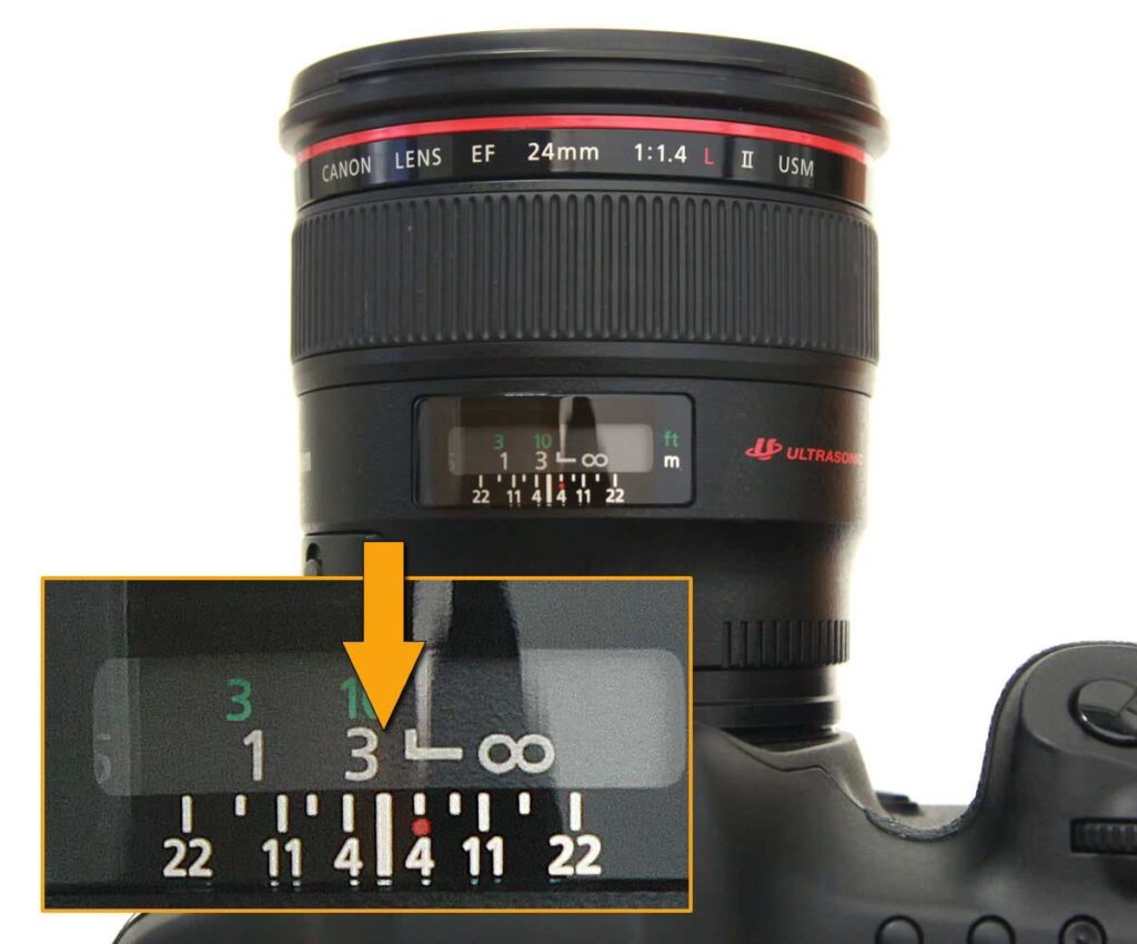 Die Entfernungsskala auf manchen Objektiven enthält auch Markierungen für die Schärfentiefe (oft Linien für verschiedene Blendenwerte). Diese Markierungen ermöglichen es dem Fotografen, die Schärfentiefe abzuschätzen oder sogar die sogenannte hyperfokale Distanz einzustellen, um den maximalen Schärfebereich von einem bestimmten Nahpunkt bis Unendlich zu erhalten.