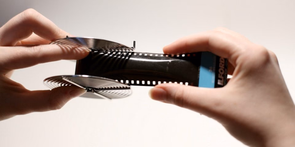 • Entwicklungsdose und Spirale: Spezielle Tanks, in die der Film auf einer Spirale eingefädelt wird und in denen die Chemikalien eingefüllt werden.