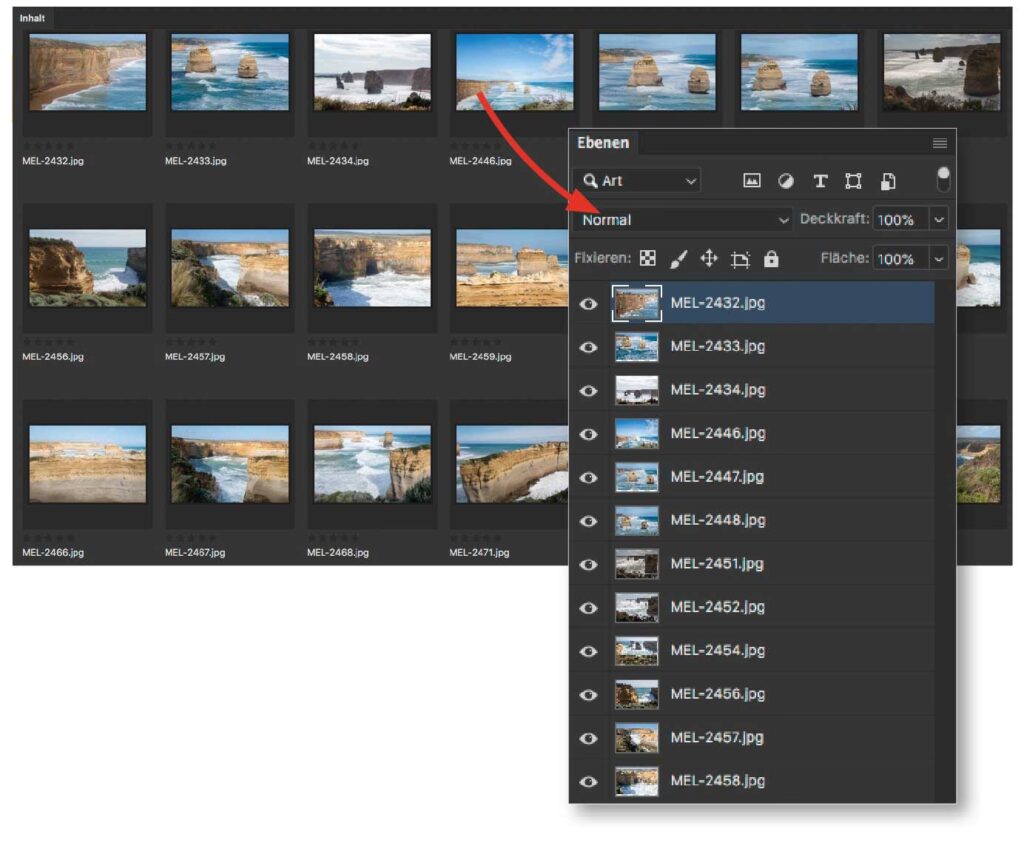 Wie lade ich mehrere Bilder als Ebenen in Photoshop?
