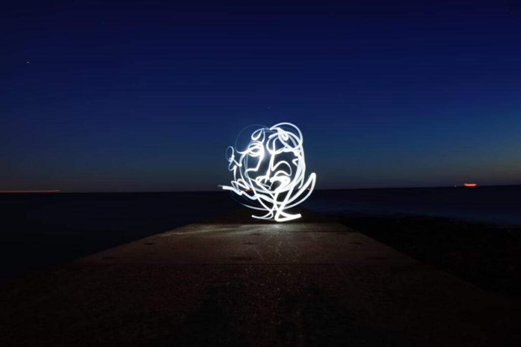 Das Schöne am Lightpainting ist die Freiheit zur Experimentation. Es gibt keine strengen Regeln, wie man mit Licht malen muss. Man kann Linien, Formen, Muster zeichnen oder sogar versuchen, Objekte oder Personen mit Licht zu beleuchten, um sie hervorzuheben. Die Kombination verschiedener Farben und Intensitäten von Lichtquellen kann komplexe und visuell beeindruckende Ergebnisse liefern. Es geht darum, die Bewegung der Lichtquelle während der Belichtung zu steuern und sich vorzustellen, wie diese Bewegung als Lichtspur im fertigen Bild aussehen wird.