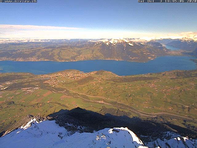Die erste Sektion führt von der Talstation Mülenen zur Mittelstation Schwandegg und dauert etwa 15 Minuten. Bereits auf diesem ersten Abschnitt beginnt sich die Aussicht zu öffnen. An der Mittelstation Schwandegg steigen die Fahrgäste in die zweite Sektion um, die sie in weiteren 15 Minuten direkt auf den Gipfel bringt. Je höher die Fahrt geht, desto spektakulärer wird die Aussicht. Der Blick schweift über den tiefblauen Thunersee, die Berner Alpen und weit darüber hinaus. Es ist eine Fahrt, die nicht nur der Fortbewegung dient, sondern bereits Teil des Bergerlebnisses ist.