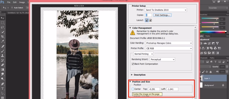 2. Der Druckdialog in Photoshop (Datei > Drucken)