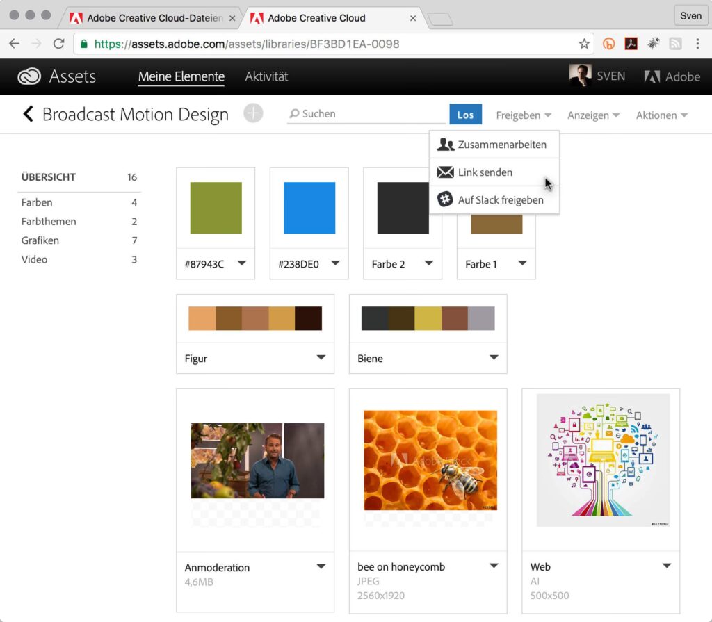 Auf der Creative Cloud-Website erhalten Sie einen vollständigen Überblick über all Ihre Bibliotheken. Hier können Sie nicht nur den Inhalt jeder Bibliothek detailliert einsehen, sondern auch neue Bibliotheken erstellen, bestehende Bibliotheken bearbeiten, löschen, umbenennen und vor allem: Bibliotheken mit anderen Creative Cloud-Nutzern teilen. Die Sharing-Funktion ist besonders wichtig für Teams, die konsistente Branding-Elemente oder gemeinsame Ressourcen nutzen müssen. Sie können Personen einladen, Bibliotheken anzuzeigen oder zu bearbeiten.