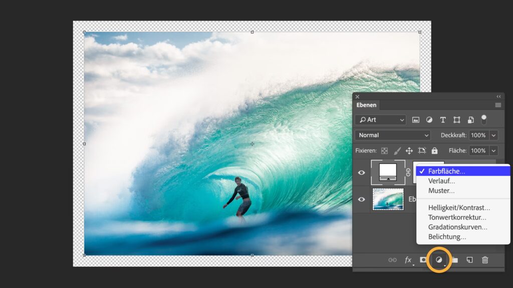 Wählen Sie eine dieser Optionen, navigieren Sie zu der Bilddatei, die Sie platzieren möchten, und bestätigen Sie Ihre Auswahl. Photoshop platziert das Bild dann automatisch innerhalb des aktiven Frames.