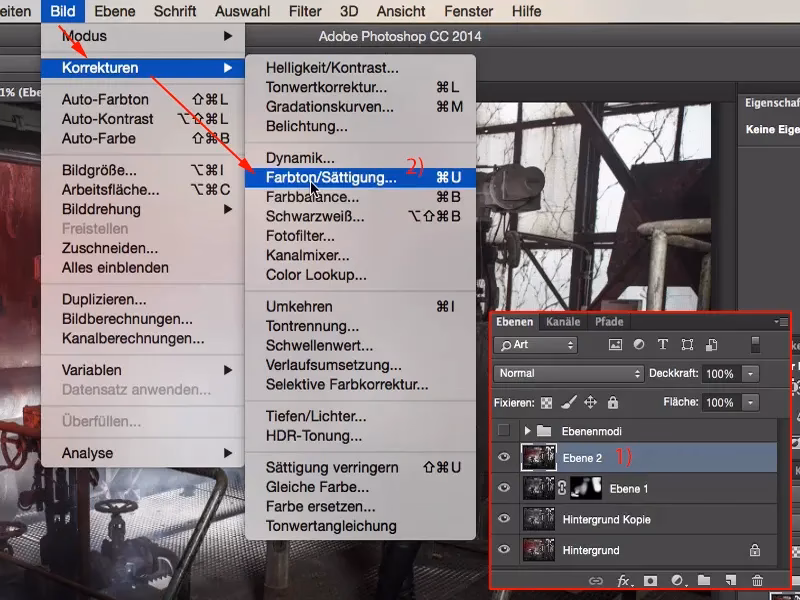 - Erste Farbüberlagerung hinzufügen (Ineinanderkopieren): Erstellen Sie eine neue Ebene über Ihrem Bild (Ebene > Neu > Ebene...). Füllen Sie diese Ebene mit der gewünschten Volltonfarbe (z. B. Ihre Markenfarbe). Ändern Sie die Füllmethode dieser Ebene auf 'Ineinanderkopieren' (Overlay) und setzen Sie die Deckkraft auf 100%. Diese Ebene interagiert nun stark mit der Helligkeit des darunter liegenden Bildes.