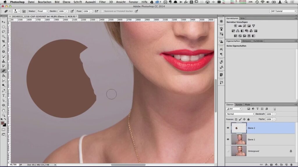 Diese destruktive Eigenschaft ist der Hauptgrund, warum professionelle Bildbearbeiter und Fotografen oft zögern, das Radiergummi-Werkzeug für komplexe oder finale Bearbeitungsschritte zu verwenden. Für nicht-destruktive Bearbeitungen gibt es bessere Methoden, auf die wir später eingehen werden.