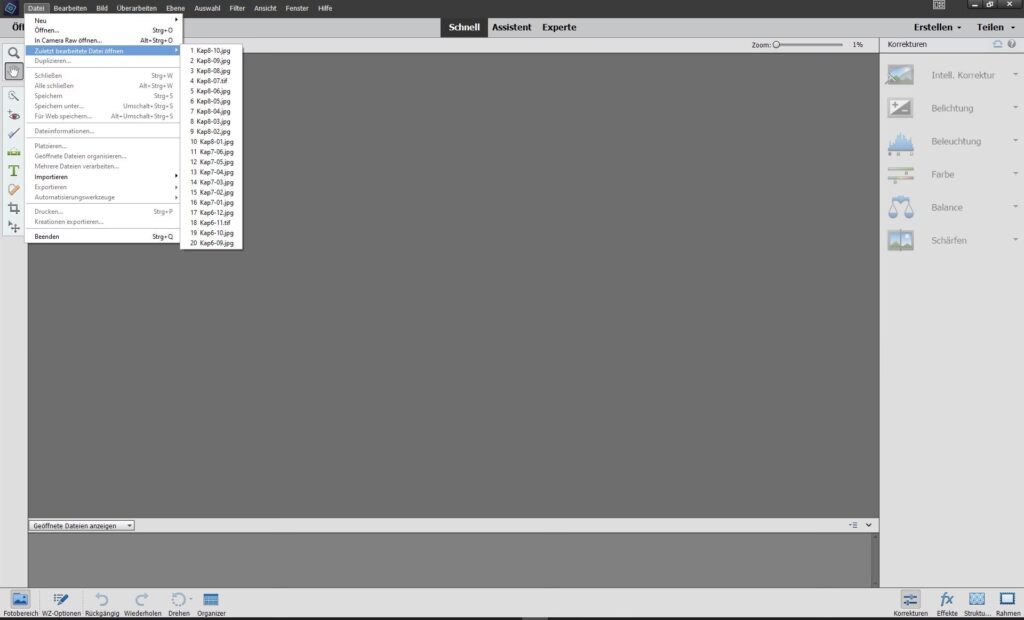 Photoshop bietet verschiedene Wege, auf zuletzt geöffnete Dateien zuzugreifen. Der prominenteste ist der Startbildschirm, der beim Öffnen der Anwendung erscheint, wenn keine Dokumente geladen sind. Er zeigt die Dateien als große, visuelle Vorschaubilder, was sehr praktisch ist, wenn man sich an das Aussehen der Datei erinnert, aber vielleicht nicht an den genauen Namen oder Speicherort.