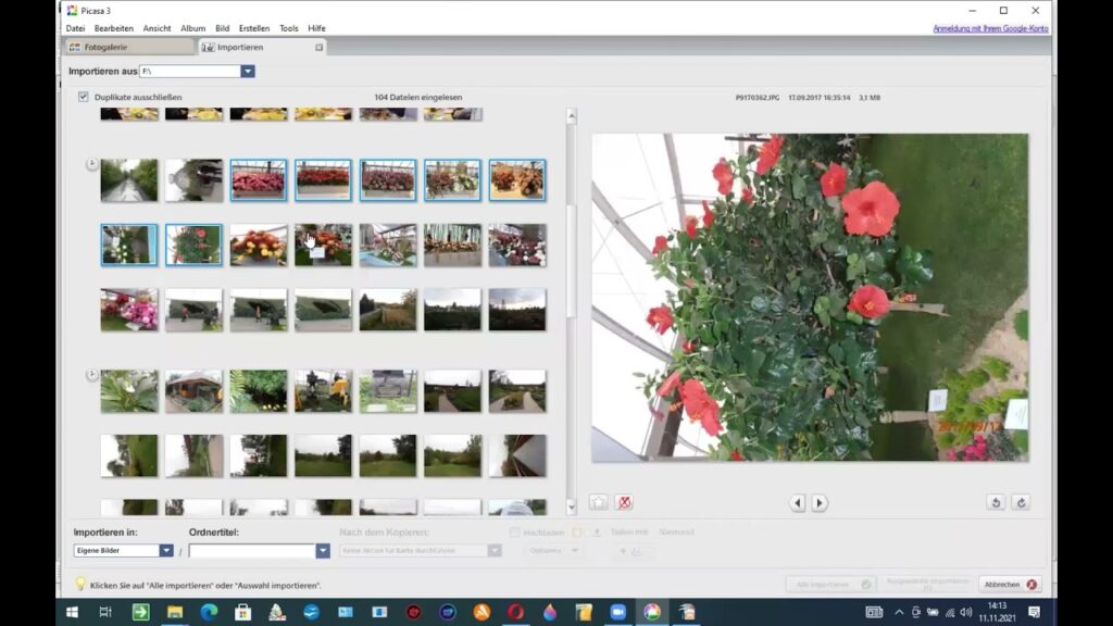 .picasaoriginalsim selben Verzeichnis wie das Original. Ihre Originaldateien sind somit immer sicher. - Wie kann ich mehrere Fotos gleichzeitig mit denselben Einstellungen bearbeiten?