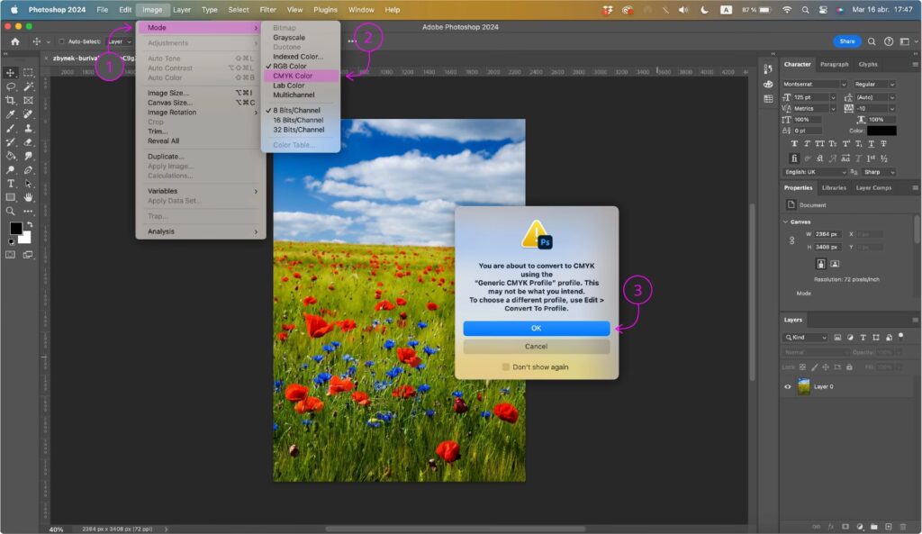 Photoshop ist das Standardwerkzeug für die Bildbearbeitung und eignet sich hervorragend, um einzelne Bilder von RGB in CMYK umzuwandeln.