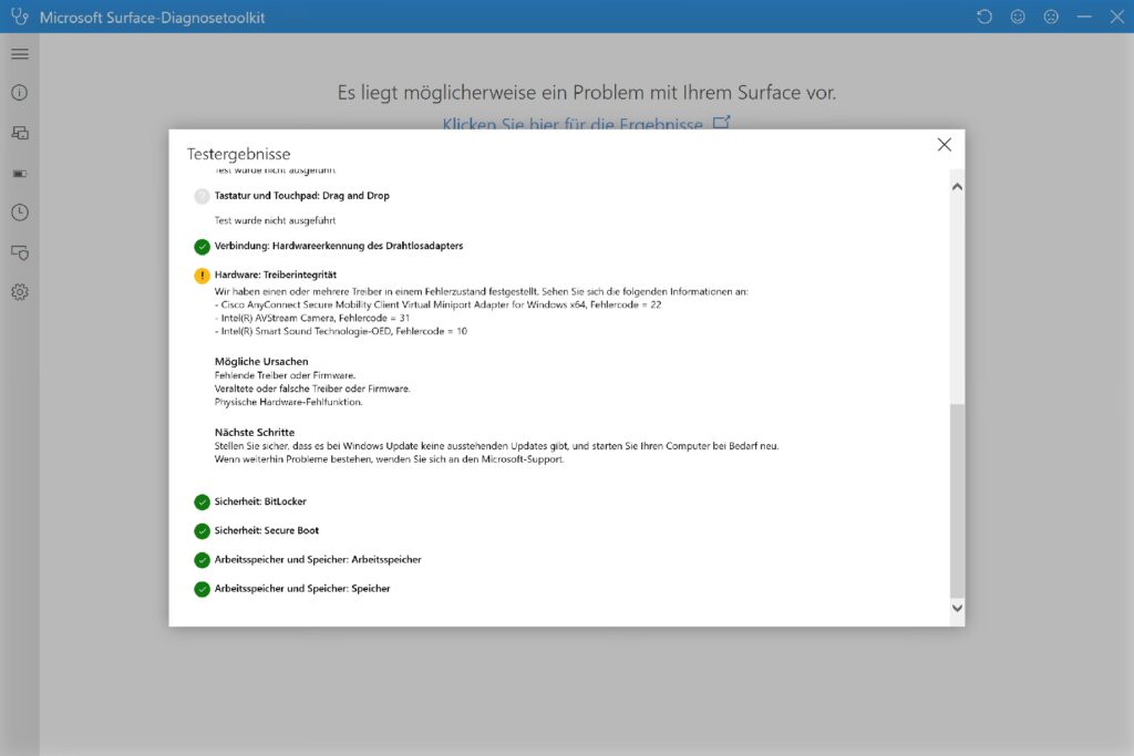 Ja, das ist der von Microsoft empfohlene erste Schritt. Die Surface App wurde entwickelt, um gerätespezifische Probleme zu erkennen und personalisierte Lösungen anzubieten, was oft der schnellste Weg zur Diagnose und Behebung ist, bevor Sie manuelle Schritte unternehmen.