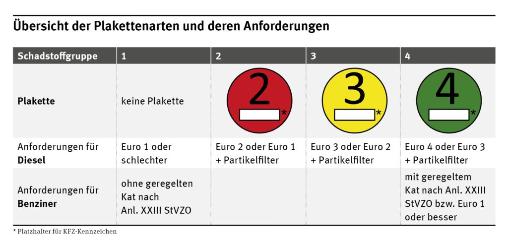 - Euro 1 oder schlechter: keine Umweltplakette