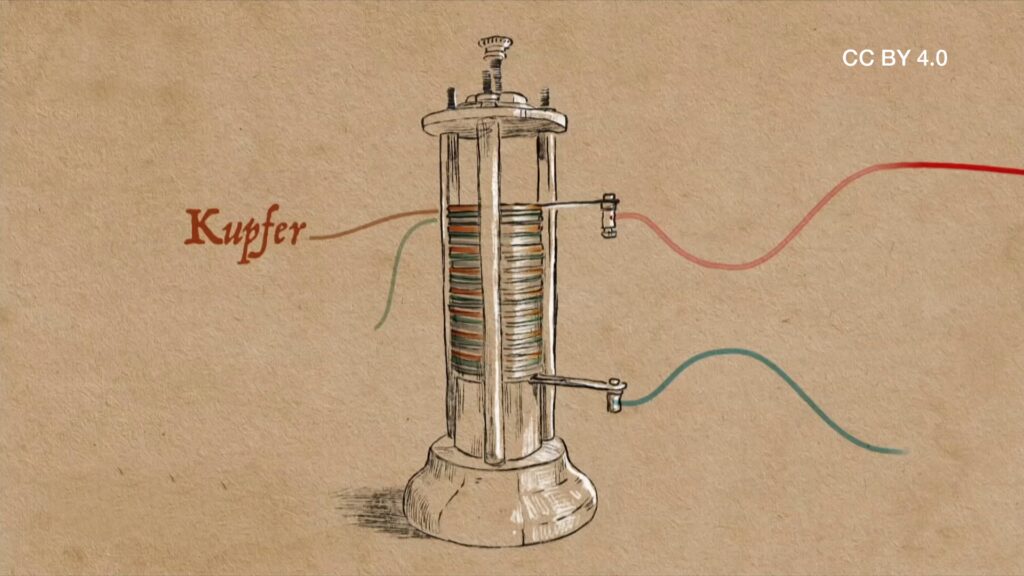 Voltas Batterie war eine sogenannte Primärzelle – sie erzeugte Strom durch eine chemische Reaktion, die nicht umkehrbar war. Sobald die chemischen Stoffe verbraucht waren, war die Batterie „leer“ und konnte nicht wieder aufgeladen werden.